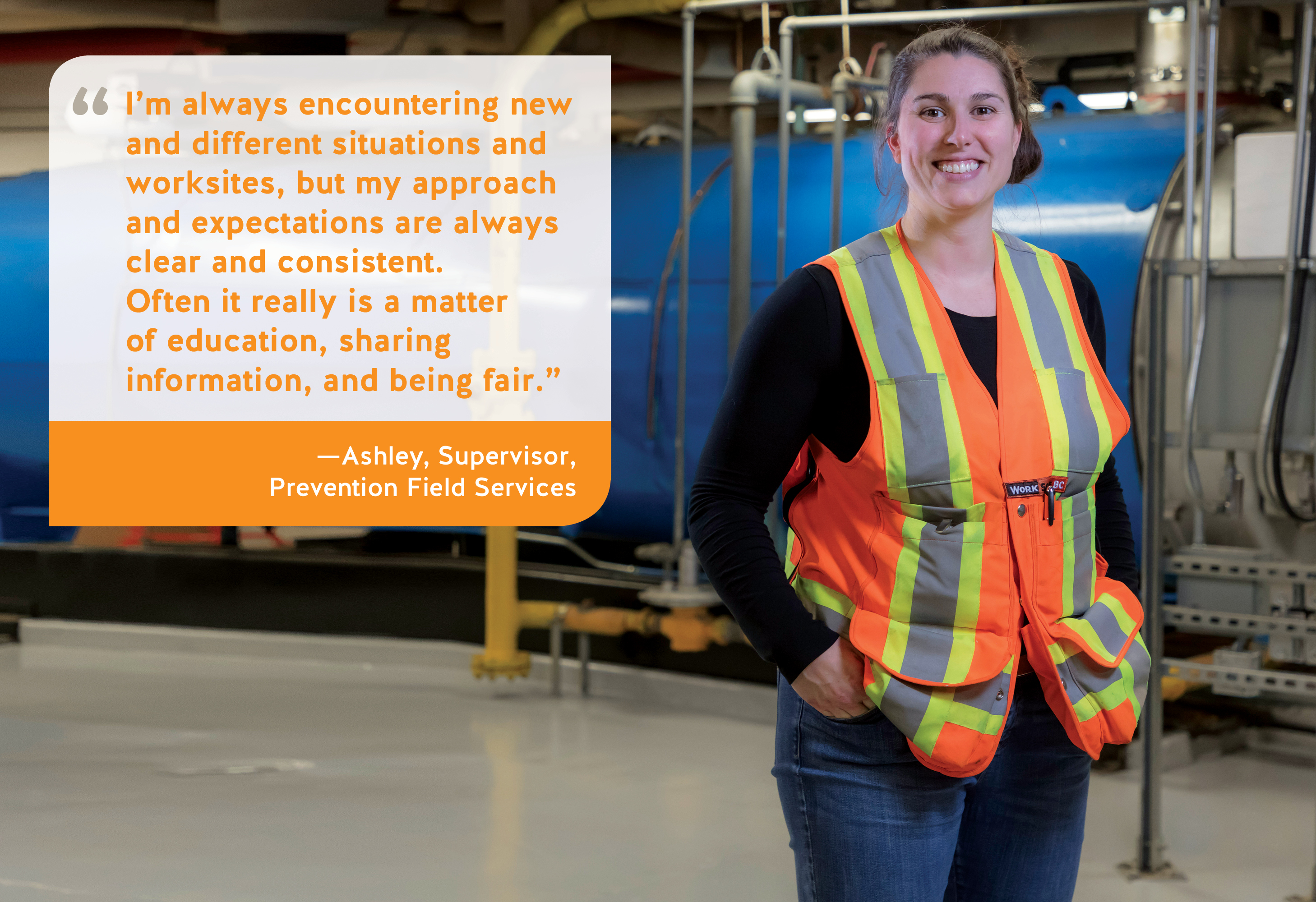"It's important that we engage and do all we can to give people a fair chance to meet their obligations," says Ashley. "I'm always encountering new and different situations and worksites, but my approach and expectations are always clear and consistent. Often it really is a matter of education, sharing information, and being fair."
