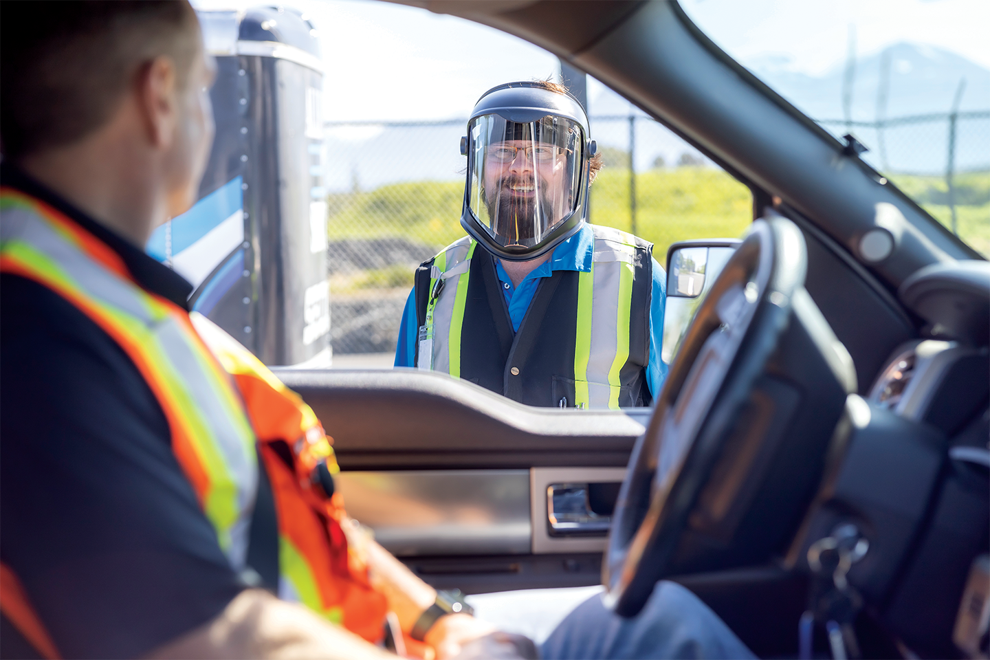 Today, anyone coming to the plant — including employees — undergoes a temperature screening before entering. Temperature screenings are not a mandatory control, but Chidambaram notes that the tests have helped identify a few people who had mild symptoms and allowed them to go home and rest. Hand washing is emphasized. Separate washrooms are dedicated to truck drivers who make deliveries.