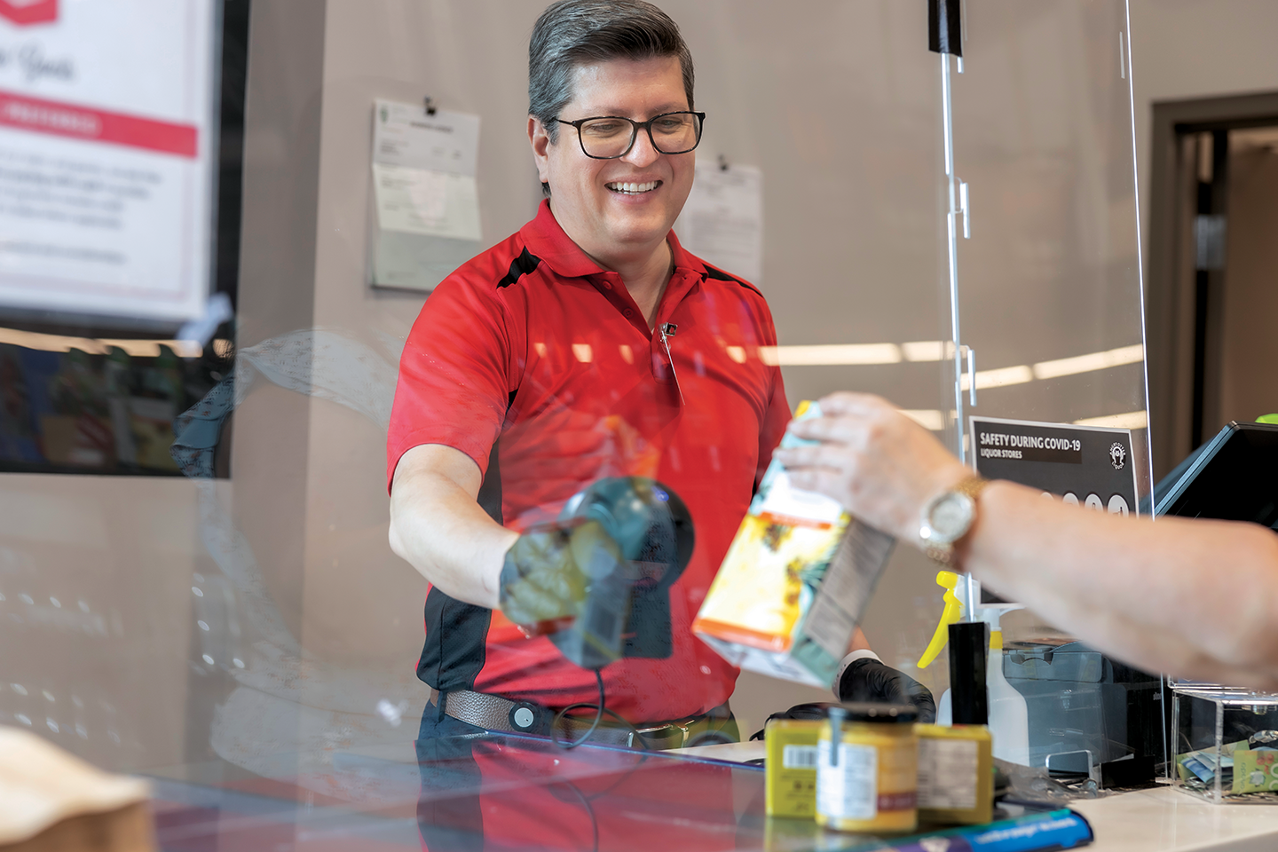 Otter Co-op took it a step further. The Langley-based retailer — it operates grocery, pharmacy, feed, and liquor stores as well as gas bars — also implemented new safe work procedures for cashiers at the stores selling non-food goods. As an administrative control, cashiers are able to scan products through the plexiglass while customers hold the items up. Workers don’t touch any items.