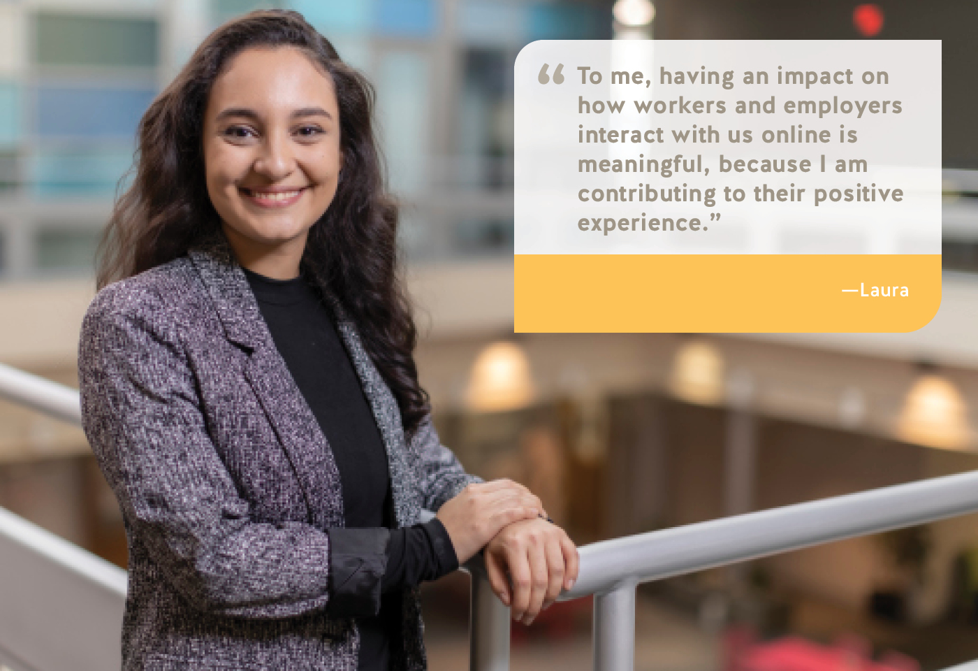 Part of Laura’s work, both as a co-op student and now as a full-time employee, involves understanding the service experience of WorkSafeBC stakeholders in order to engage them and support various service design improvements. She recalls a recent project where her team applied user experience (UX) research principles to help improve WorkSafeBC’s online portal for workers and employers. The project involved collaborating with design and Innovation and Technology teams to problem solve how to streamline processes to improve the delivery of services.