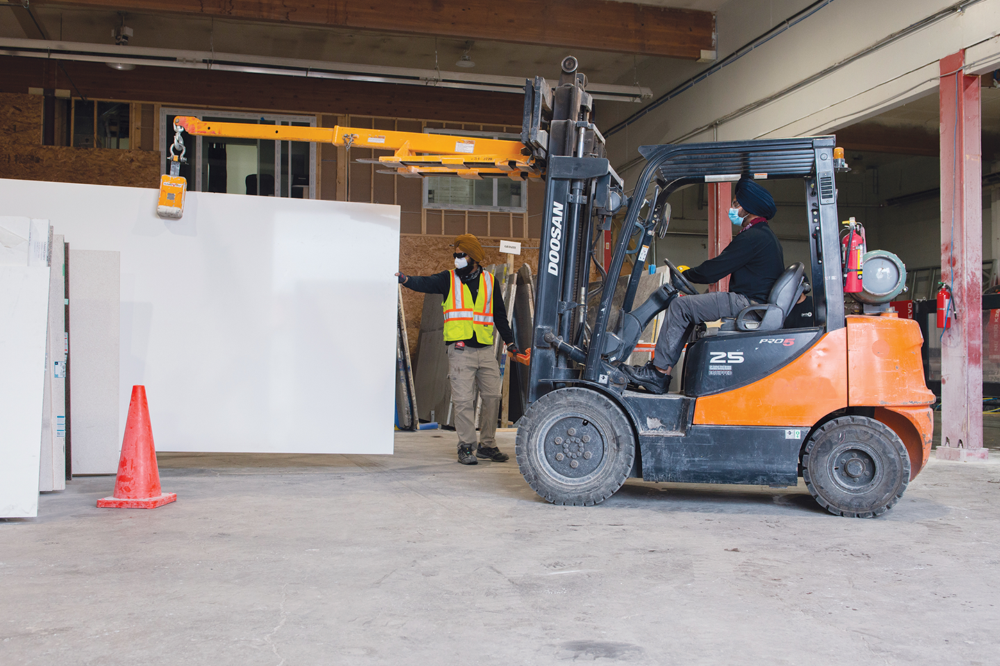 “MSI risks are present in every industry, but they are even greater when lifting materials that are heavy and awkward to maneuver,” notes Chelsea Wilson, an occupational safety officer at WorkSafeBC based in Prince George. “The human body is not designed to lift heavy materials that are awkwardly shaped like countertops, which is why we want employers to look at tools that can help reduce back and shoulder injury risks.”
