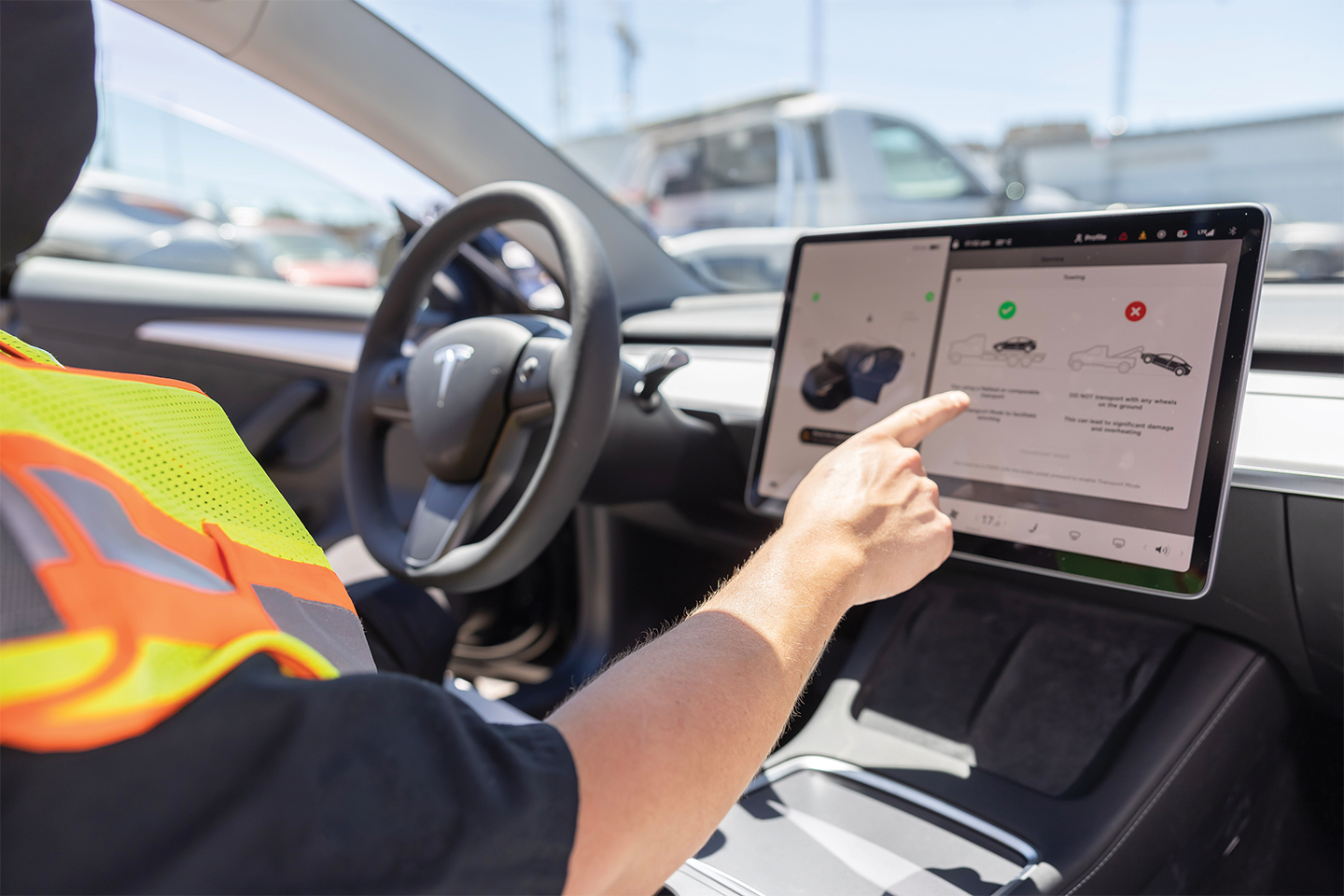“Workers need to know which panels to remove to re-engage the vehicle’s 12-volt battery, for example,” says Martin. “For some Teslas, the vehicle’s software can allow us to put it into tow mode, which elevates the airbag suspension or puts the vehicle into neutral so that it can roll freely onto the truck deck.”