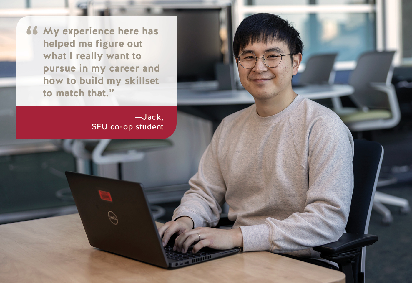 As an SFU student working on his master’s degree in professional computer science for big data, Jack studies cloud computing and data science. His experience at WorkSafeBC as a co-op student in the Analytical Data and Lifecycle Services department helped him build on what he has learned in school and has been instrumental in guiding his career and working with new tools and technology.