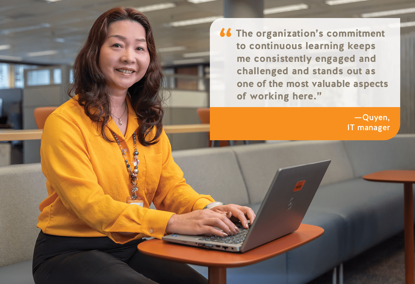Quyen joined WorkSafeBC in 1992 during her fifth co-op term. Despite having job offers from other companies such as Hong Kong Bank and Safeway, she chose WorkSafeBC because of its reputation and its dedication to advancing health and safety in B.C. workplaces.
