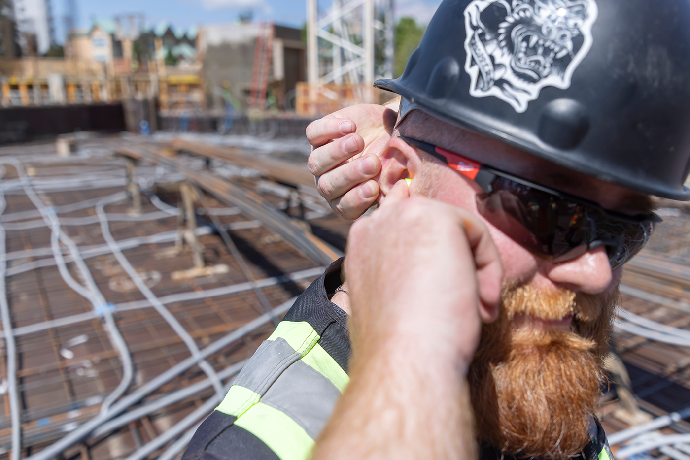 Find a video that shows how to insert earplugs, along with more resources on hearing protection, at worksafebc.com/hearing-protection.