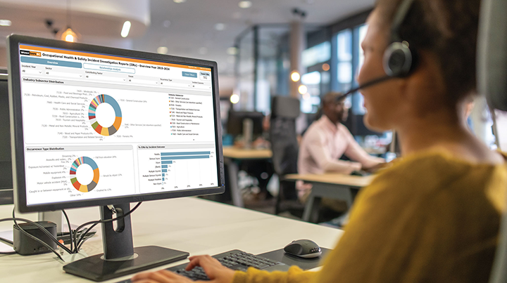 The dashboards feature charts and graphics that are useful for research, reports, business planning, and injury-prevention training, says Rob Sturrock, manager of analytics strategy and delivery at WorkSafeBC.