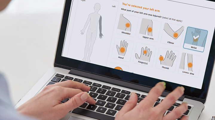 - User-friendly navigation and visuals: You’ll see your progress as you move through the form sections and use visuals to indicate which part of your body was injured.