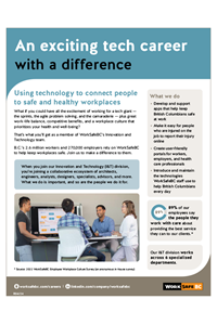 Our Innovation and Technology division develops tools and programs to better serve B.C. workers and employers and connect them to healthy and safe workplaces. With leading-edge technology, opportunities for growth, a hybrid work environment, and the chance to make a difference in people’s lives, an IT career at WorkSafeBC is all about making connections that matter.