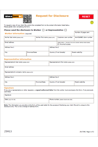 If you'd like a copy of your claim information, please download, complete, and send us a Request for Disclosure Form. Write clearly and make sure you sign the form. Your signature helps us to authenticate your identity and protect your privacy. Then, mail or fax it to the address listed at the top of the form. Employers will only receive a copy of claim information if they are a participant in a review or appeal.
