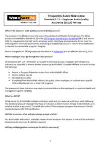 The addendum below (effective January 1, 2016) clarifies section 3.12 3 of the Certificate of Recognition Program Standards and Guidelines by describing the EAQA process. It defines the roles and responsibilities of WorkSafeBC, the certifying partners, and employers.