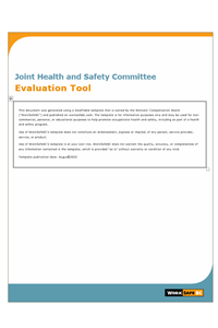 To assist in the evaluation process, committees can use the Joint Health and Safety Committee Evaluation Tool. You are not required to use this template, however, and can use your own committee evaluation tool as long as it includes all the information required by section 3.26 of the Regulation.
