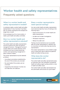 If your workplace has more than 9 but fewer than 20 workers, you need to have a worker health and safety representative. This includes any workplace where there are 10 or more workers employed at the workplace for longer than a month.