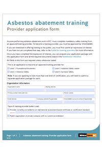 Note: We are not currently accepting applications for new asbestos abatement training providers. If you have any questions, please email certification@worksafebc.com.