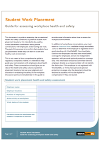 This document is a guide to assessing the occupational health and safety conditions at potential student work placement locations. It is intended to be used by school placement coordinators during phone...