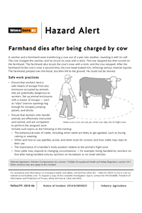 Working with or around animals, workers can experience injury and/or illness. Animals can kick and bite, step on a worker, or squeeze a worker against a wall or fence, causing serious — and sometimes fatal — injuries.
