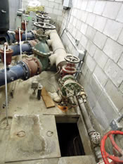 On some farms, water enters into chambers in the pump station, where there's a pump intake or pipes leading to the intake. The pump station may have additional chambers for directing water flow.