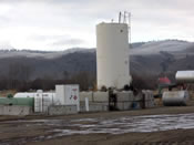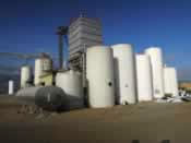 Fuel and products such as liquid fertilizer solution are stored in tanks for use on demand.