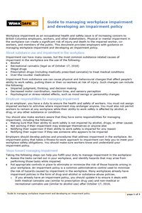 Workplace impairment as an occupational health and safety issue is of increasing concern to British Columbia employers, workers, and other stakeholders.