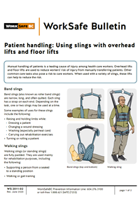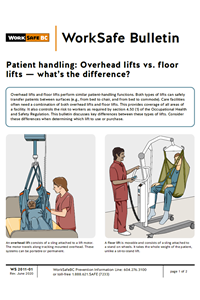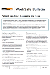 Before any transfer or repositioning of a person, conduct a risk assessment. Based on that assessment, choose the most effective control that is most appropriate for the person and the worker. Employers must train workers about the safe use of patient handling equipment.
