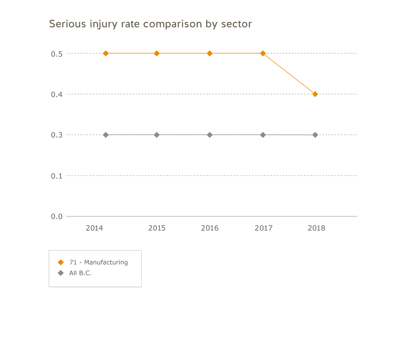 To see health and safety statistics for your industry, visit Industry health and safety data. You can use our industry data tools to identify opportunities to improve health and safety in your workplace and compare your industry with other industries in B.C. The information is available to everyone and presented in charts and graphs to use in research, reports, or business plans.