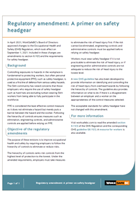 If the assessment determines that the risk of head injury can’t be eliminated or reduced to the lowest level practicable, workers might need to wear safety headgear on the job.