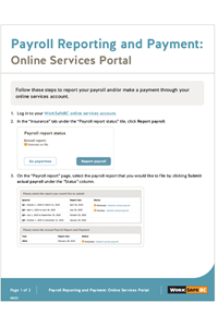 Log in to your employer online services account for the easiest and most convenient way to report payroll, pay premiums, and more. Please refer to the report and pay guide for instructions on reporting your payroll online and/or paying your premiums.