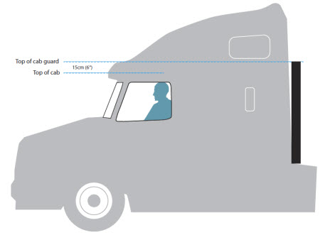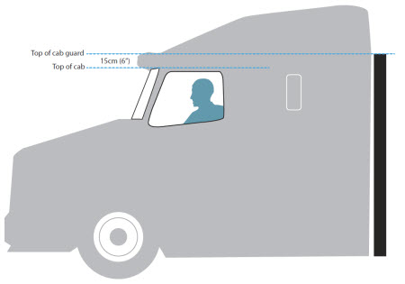 In order to calculate the strength of the cab guard, the rated capacity of the cab guard must withstand at least 40% of the load directly behind the driver, plus one half of 40% of the load in the second trailer, plus one quarter of 40% of the load in the third trailer.