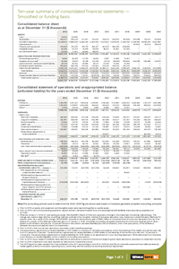 2016 Ten-year summary of consolidated financial statements — Smoothed or funding basis