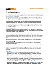 This backgrounder provides an overview of how WorkSafeBC is funded, how premium rates for employers are determined, and some key facts about premium rates.