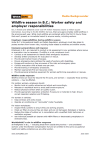This backgrounder on wildfires provides an overview of employer obligations related to emergency response planning, as well as ways to reduce exposure to wildfire smoke for indoor and outdoor workers. The backgrounder also provides links to several key WorkSafeBC resources related to wildfires.