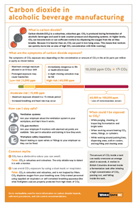 What is carbon dioxide? Carbon dioxide (CO2) is a colourless, odourless gas. CO2 is produced during fermentation of alcoholic beverages and used in tank counter-pressure and dispensing systems. At higher levels, CO2 can become toxic or can suffocate workers by displacing the oxygen from the air they breathe. Because it is heavier than air, CO2 can pool in low-lying areas. This means that workers can quickly move into an area of high CO2 concentration with little warning.