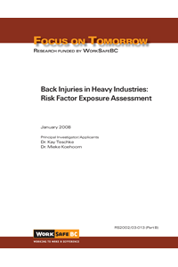 To accomplish this goal, researchers measured the exposures of 126 workers employed in five major heavy industries in B.C., using five different exposure assessment methods. Three of these methods used instruments that took direct measurements of some of the most important risk factors for back disorders: posture and bending; muscle activity due to both posture and materials handling; and vibration of the body due to operating a vehicle. The other two methods gathered less detailed yet wider-ranging information about risk factors through once per minute observation of work, and through end-of-shift interviews with workers.