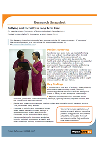This study explores the pervasive issue of workplace incivility among healthcare aides (HCAs) in long-term care (LTC) settings. While overt bullying was rare, HCAs frequently encountered subtle, passive-aggressive behaviours, including social exclusion, gossip, blaming, and refusal to offer help. These behaviours were particularly prevalent among casual staff and had serious implications for HCAs’ mental and physical well-being. Incivility contributed to stress, reluctance to work, and an increased risk of musculoskeletal injury, as HCAs became hesitant to request or provide assistance with resident care. Gender dynamics and power relations influenced these interactions, with staff attributing such behaviours to the nature of "women’s" work or strong personalities. Current policies, which focus on overt aggression, fail to address the gendered, low-intensity nature of incivility. The study calls for more gender-informed policies and offers practice recommendations at the individual, organizational, and systemic levels, alongside suggestions for future research on the link between workplace culture and injury rates.