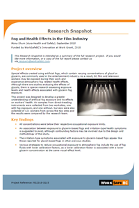 This study aimed to assess fog exposure levels and associated health impacts on workers using light scattering instruments to measure fog concentrations. A cross-sectional epidemiological approach was used, involving a questionnaire administered to a subset of workers in Metro Vancouver. The study compared a glycerin-exposed group with a control group with no fog exposure. The results showed that workers exposed to glycerin-based fog had significantly higher odds of reporting respiratory and eye irritation symptoms, although all exposure levels were within occupational limits. While limitations included a small sample size and selection bias, the findings nonetheless suggest that glycerin-based fogs may contribute to irritation symptoms, and further research with medical diagnostics and studies on various fog fluids is recommended to assess long-term health risks.