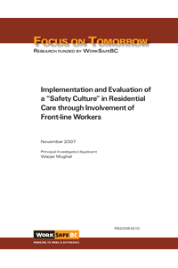The researchers set out to develop, deliver and evaluate workplace interventions to reduce MSIs in a residential care environment. An Innovation Team of five frontline staff members played a key role in designing and delivering the interventions, which were modeled on successful practices at another residential care unit known as a “best performer” in preventing MSIs. Injury rates as well as several measures of work and safety culture were assessed before and after the interventions