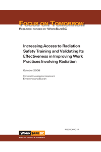 In this project, researchers developed four training modules in online and DVD formats, with the goal of improving staff access to radiation safety training. The modules developed were: Radiation Safety Basics, Radiation Safety for Nursing Staff, Radiation Safety for Nuclear Medicine Technologists, and Safe Use of Fluoroscopy. To assess whether the modules were effective in transferring knowledge and improving work practices involving radiation, a pilot study was conducted in three B.C. health authorities