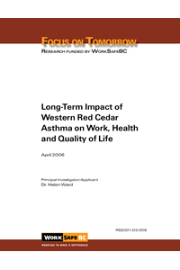 The researchers examined the respiratory health and quality of life of B.C. workers diagnosed with Western red cedar asthma (WRCA) since 1972. Information about work history, current employment, exposure status, respiratory symptoms, and overall quality of life were gathered through telephone interviews. Findings indicate that WRCA can impact quality of life as well as respiratory health. The most favourable outcomes were experienced by individuals who continued working after diagnosis, particularly when this work did not involve further WRC exposure.