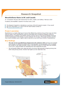 This study examines trends in mesothelioma incidence and survival in Canada, focusing on data from British Columbia (B.C.) and Ontario. Despite the asbestos ban in Canada, mesothelioma remains a significant concern due to its long latency period. Using data from cancer registries in B.C. (1992-2016) and Ontario (1993-2017), the study analyzes trends in mesothelioma incidence, survival rates, and geographical patterns. The incidence of mesothelioma has steadily increased, with a notable rise in women and older populations. Survival rates remain low, with median survival times of 8 months in both provinces, and 5-year survival rates of only 3.5% in B.C. and 7.6% in Ontario. Geographic variability was observed, with higher rates in areas with historical asbestos use. The study highlights the need for ongoing surveillance, better exposure history data, and the establishment of a mesothelioma registry to improve understanding and prevention of this fatal disease.