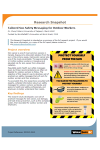 Skin cancer rates are rising in Canada, with ultraviolet radiation (UVR) from the sun as the primary cause. Outdoor workers, estimated at 1.5 million in Canada, face heightened risks of skin cancer, eye damage, and heat stress. Current sun safety messages for the general public are ineffective for this group due to feasibility concerns. This study aimed to develop practical, harm-reducing sun safety messages for outdoor workers, using an integrated knowledge translation approach. Key steps included an environmental scan, a needs assessment with stakeholders, expert surveys to tailor messages, and a workshop to assess the feasibility of the messages. The study identified a gap in peer-reviewed literature and emphasized the need for simple, relevant messages to drive action. Tailored messages were developed using a modified Delphi method to build consensus among experts. The study culminated in a knowledge translation plan to disseminate these messages to outdoor workers, employers, and health and safety regulators.