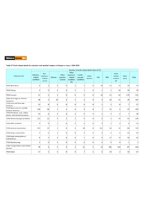 This table provides the claim count for work-related deaths by subsector, for each category of injury and disease, for the 25-year period from 1996 to 2020. The total claim count is also included for each subsector.