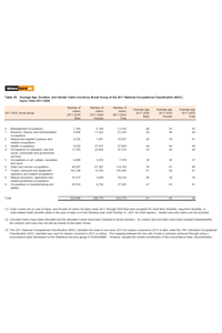 This table provides the claim count for occupational injuries by broad group of the 2011 National Occupational Classification (NOC) with average age, for each gender, for the 10-year period from 2011 to 2020. The total claim count and average age are also included for the same period.