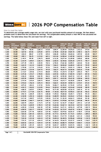 This POP compensation table shows the approximate benefit levels that are payable to self-employed workers with POP coverage.