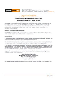 Disclosure of WorkSafeBC claim files for the purpose of a legal action.