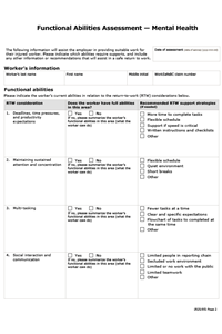 Functional Abilities Assessment — Mental Health: Template for Employers
