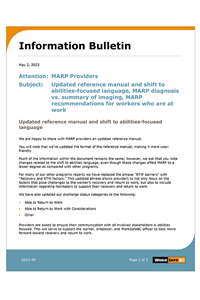 Updated reference manual and shift to abilities-focused language, MARP diagnosis vs. summary of imaging, MARP recommendations for workers who are at work (May 2, 2023)