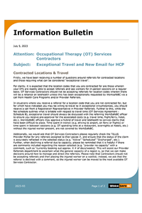 Exceptional Travel and New Email for HCP (July 5, 2023)