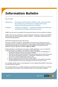 COVID-19 Update - Update Reference Manual and Remote Programming Services (May 14, 2020)