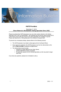 Direct Referral to WorkSafeBC Visiting Specialist Clinic (VSC) (December 17, 2012)