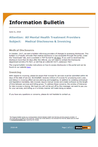 Mental Health Treatment Providers - Medical Disclosures & Invoicing (June 21, 2018)