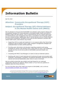 Occupational Therapy (OT) Clinical Advisors in the Mental Health Claims Unit (MHCU) (April 20, 2018)